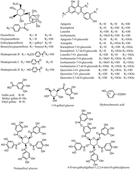 - He, C.N.; Peng, Y.; Zhang, Y.C.; Xu, L.J.; Gu, J.; Xiao, P.G. Phytochemical and biological studies of paeoniaceae. Chem. Biodivers. 2010, 7, 805–838. [Google Scholar] [CrossRef] [PubMed]