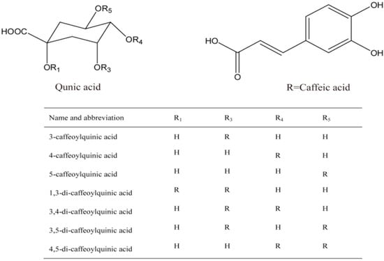 Acetonitrile, methanol, and formic acid are of HPLC grade (Fisher Scientific, Fairlawn, NJ, USA). The water used was purified by a Milli-Q system (Millipore, Milford, MA, USA). Seven standards including 5-CQA, 3-CQA, 4-CQA, 1,3-diCQA, 3,4-diCQA, 3,5-diCQA, and 4,5-diCQA were all purchased from National Institutes for Food and Drug Control (Beijing, China), and identified in our laboratory for qualitative analysis. All data for CQAs presented used the recommended IUPAC numbering system [17].