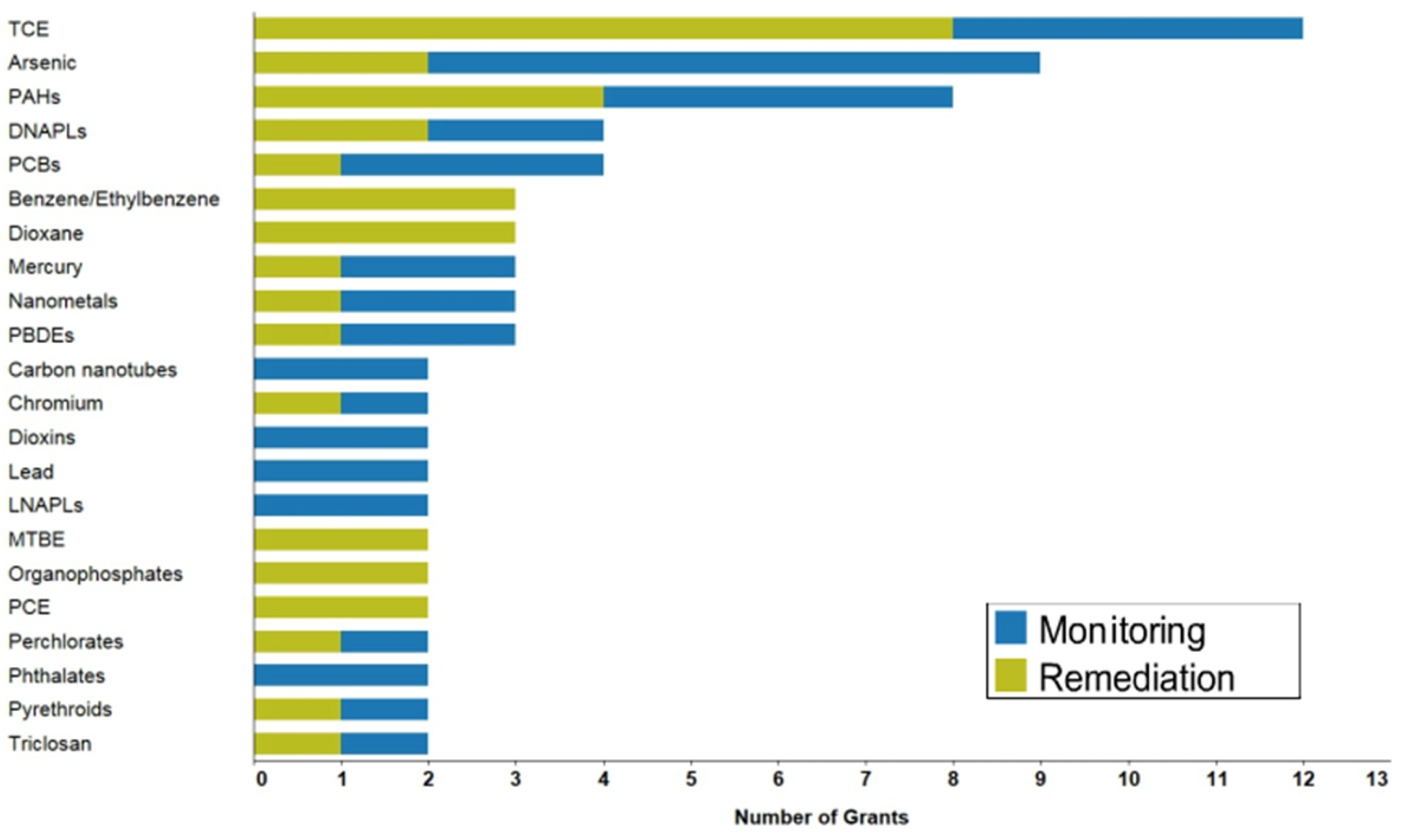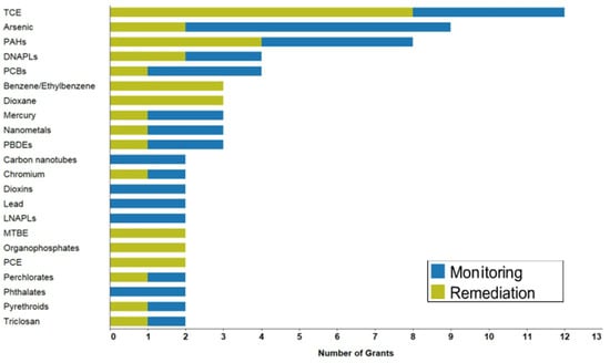 Relative share of contaminants studied by projects funded through the Superfund Research Program (FY 2011–2015). Reprinted with permission from National Institute of Environmental Health Sciences (NIEHS).