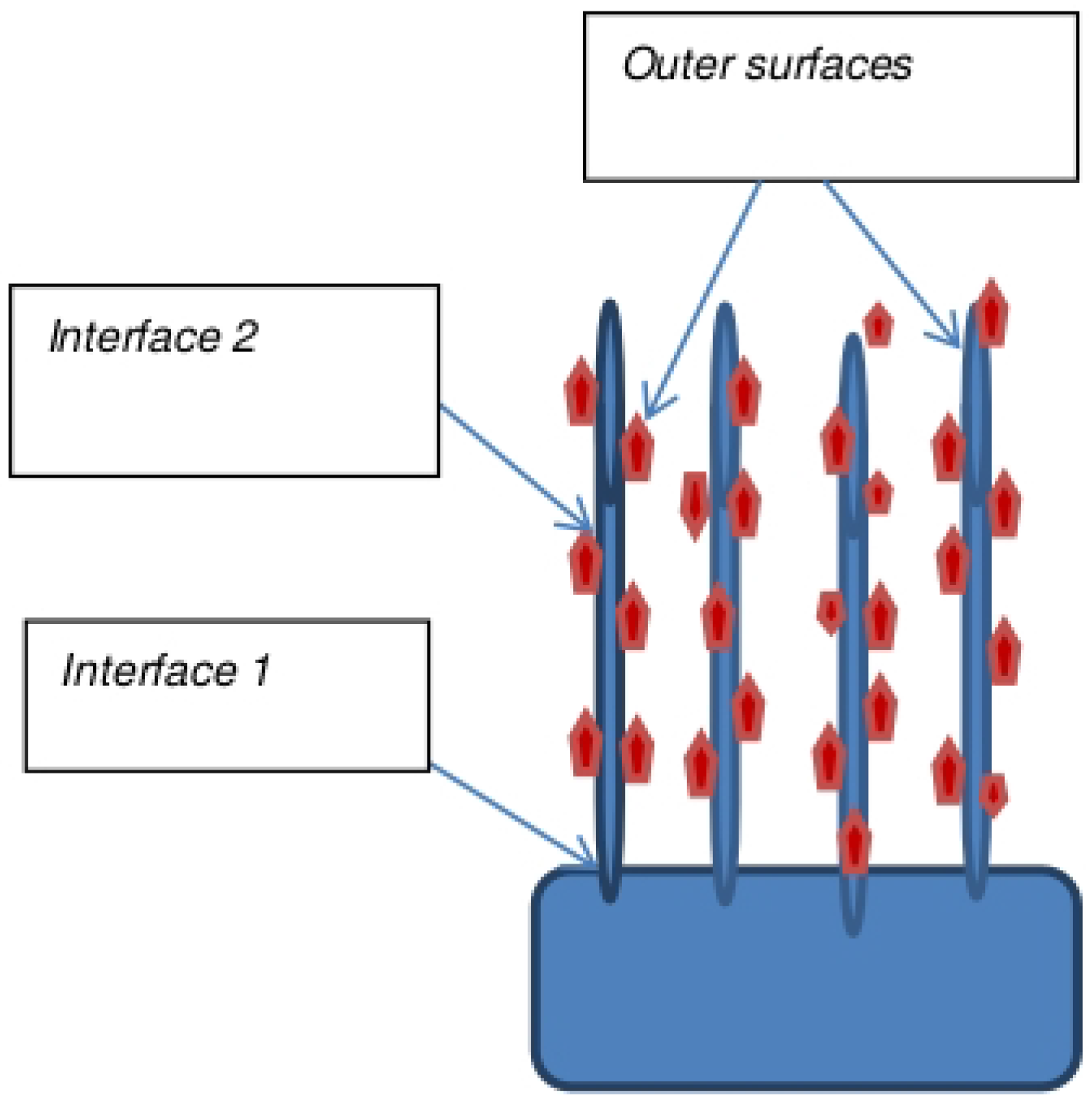 Hierarchical design with the increased number of interfaces. Interface 1 is between the CNT and porous carbon substrate and Interface 2 is between CNT and nanoparticles.