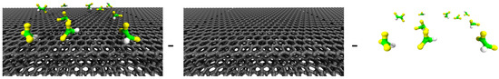 - Balamurugan, K.; Subramanian, V. Adsorption of chlorobenzene onto (5, 5) armchair single-walled carbon nanotube and graphene sheet: Toxicity versus adsorption strength. J. Phys. Chem. C 2013, 117, 21217–21227. [Google Scholar] [CrossRef]