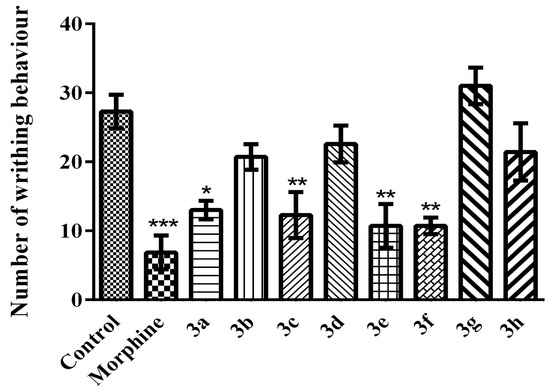 - Can, O.D.; Alyu, F.; Turan, N.; Ozdemir, A. Antinociceptive activities of some 4,5-dihydro-1H-pyrazole derivatives: Involvement of central and peripheral pathways. Lett. Drug Des. Discov. 2016, 13, 411–417. [Google Scholar] [CrossRef]