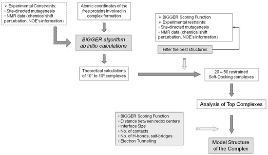 - Morelli, X.J.; Palma, P.N.; Guerlesquin, F.; Rigby, A.C. A novel approach for assessing macromolecular complexes combining soft-docking calculations with nmr data. Protein Sci. 2001, 10, 2131–2137. [Google Scholar] [CrossRef] [PubMed]