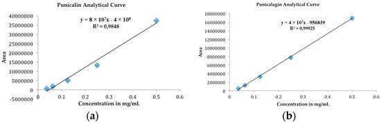 Analytical curves of the biomarkers (a) punicalin and (b) punicalagin.