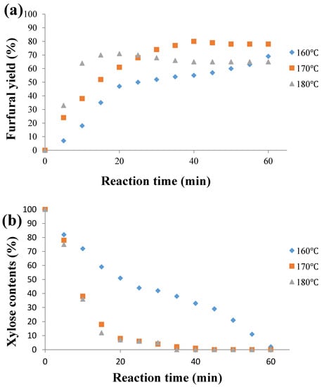 2.1. Influence of the Temperature on Furfural Yield