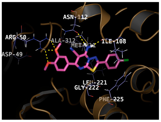 Docking pose of compound 4i in the active site of thymidylate synthase enzyme.