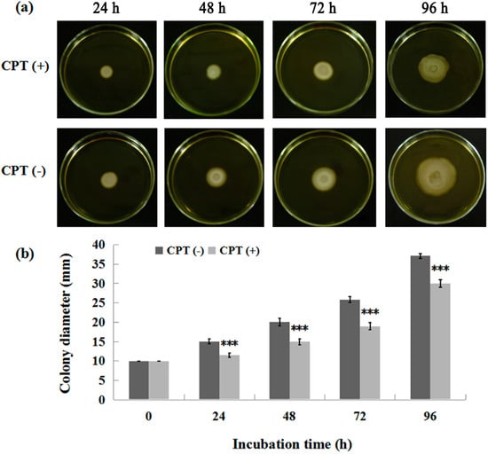 - Zhang, L.; Sun, Y.; Wang, P.; Tong, S.M.; Ma, L.J. Antifungal activity of camptothecin on Rhizoctonia solani, Sphaerotheca fuliginea and Pseudoperonospora cubensis. J. Zhejiang For. Coll. 2008, 6, 681–684. [Google Scholar]