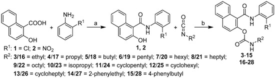 Synthesis and Antimicrobial Evaluation of 1-[(2-Substituted phenyl)carbamoyl]naphthalen-2-yl Carbamates †