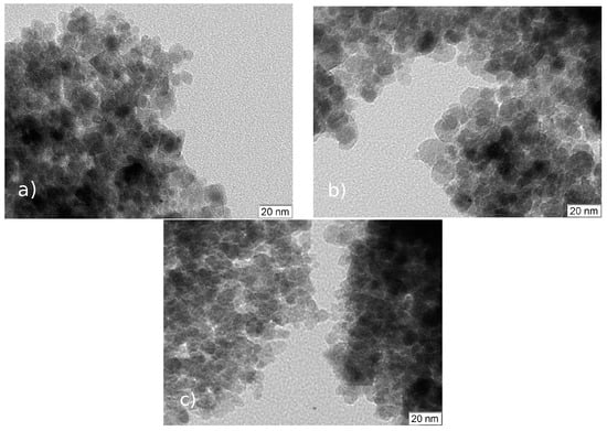 TEM micrographs of the nonfunctionalized nanoparticles synthezised by Methods: #1 (a); #2 (b); and #3 (c).