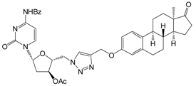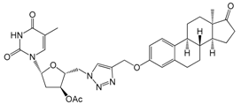 CuAAC conjugation reaction of 3′-O-acetyl-5′-azido-2′,5′-dideoxynucleosides and 3-O-propargyl-13α-estrone.