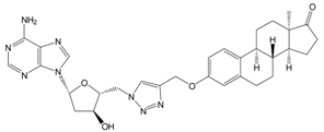- Iyer, V.K.; Butler, W.B.; Horwitz, J.P.; Rozhin, J.; Brooks, S.C.; Corombos, J.; Kessel, D. Some adenine and adenosine methylene-bridged estrogens. J. Med. Chem. 1983, 26, 162–166. [Google Scholar] [CrossRef] [PubMed]