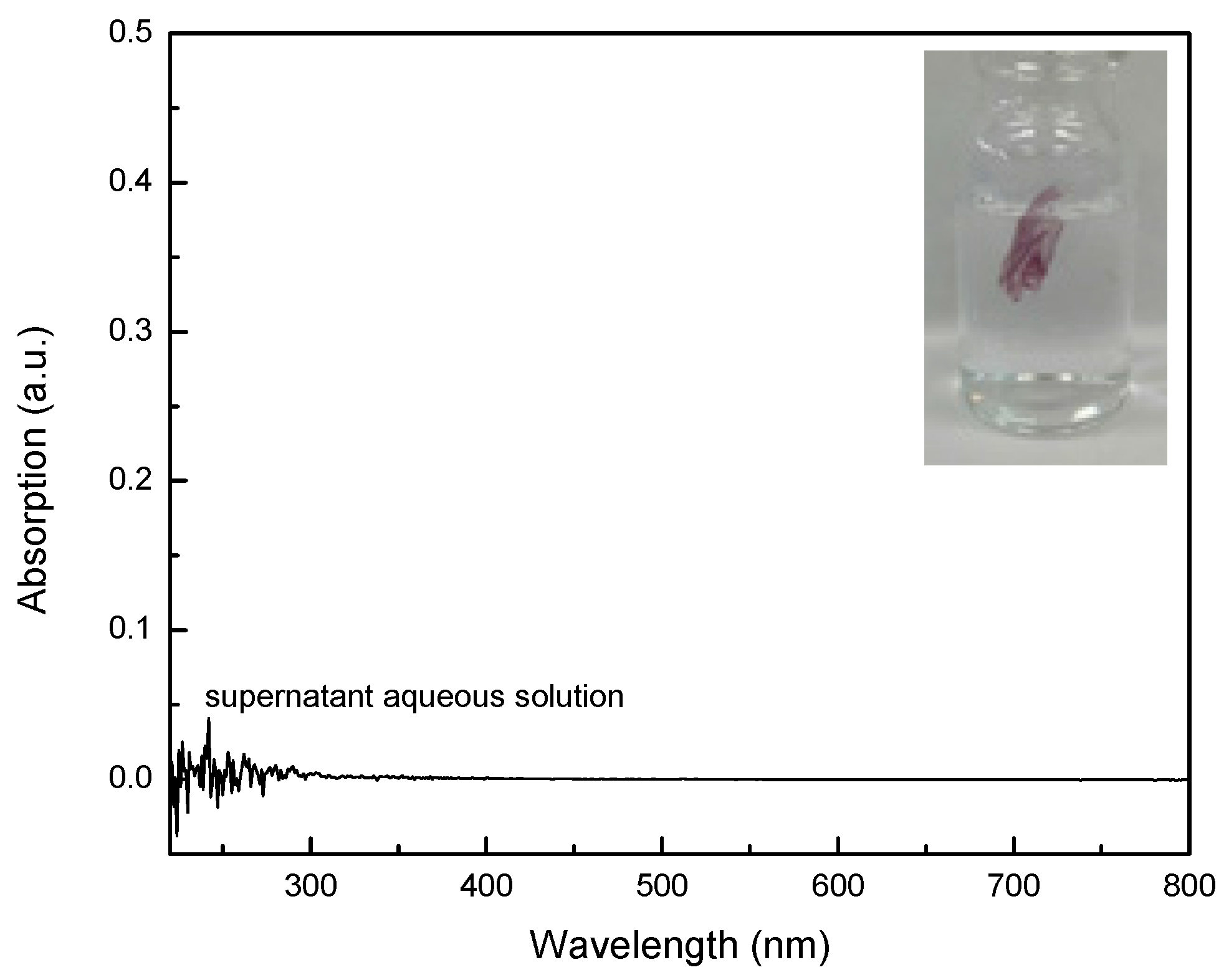 UV-vis spectrum of the supernatant aqueous solution recorded after immersing the crosslinked PVP/Au electrospun fibrous mat in water at ambient temperature for several days.