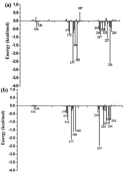 2.6. Binding Free Energy Calculations and Decomposition Analysis