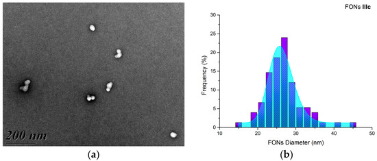 (a) TEM image of FONs IIIc; (b) Size distribution and Log Normal fitting of FONs IIIc.