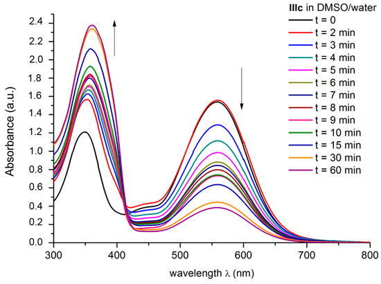 Monitoring of the evolution of the absorption spectra of dye IIIc in DMSO after addition of 2% of water.