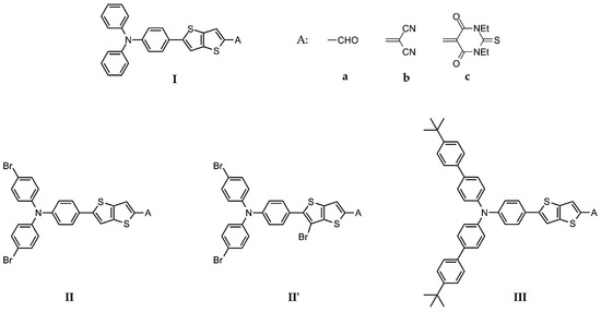 Series of push-pull derivatives I–IIIa–c built from a thieno[3,2-b]thiophene π-connector.