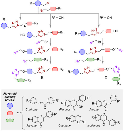 3.3. Synthesis of Triazole-Bridged Flavonoid Dimers and Trimers