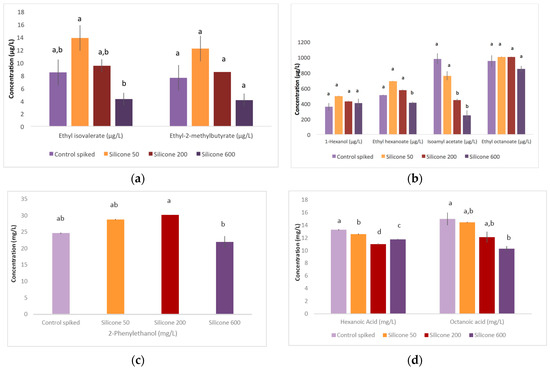 | Silicone 600 | 2.95 b | 11.00 | 6.28 b,c | 0.86 | 0.31 | 50.30 a,b |