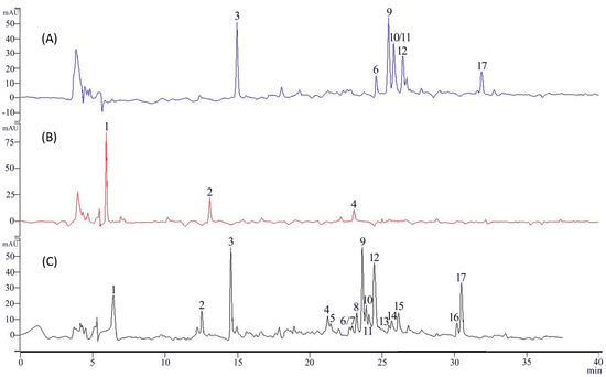 4.9. Identification of XO Ligands by UPLC-DAD-ESI-MS2