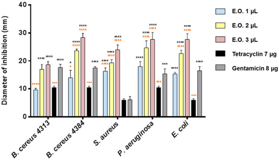 - Nazzaro, F.; Fratianni, F.; de Martino, L.; Coppola, R.; de Feo, V. Effect of Essential Oils on Pathogenic Bacteria. Pharmaceuticals 2013, 6, 1451–1474. [Google Scholar] [CrossRef] [PubMed]