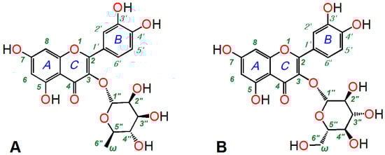 Ball-and-stick models of quercitrin (A) and isoquercitrin (B).