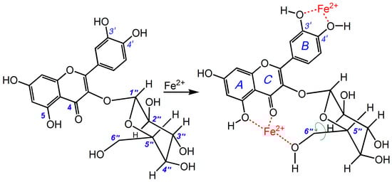 Proposed reaction of isoquercitrin with chelating Fe2+.