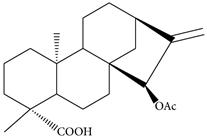 - Cavalcanti, B.C.; Bezerra, D.P.; Magalhaes, H.I.; Moraes, M.O.; Lima, M.A.; Silveira, E.R.; Camara, C.A.; Rao, V.S.; Pessoa, C.; Costa-Lotufo, L.V. Kauren-19-oic acid induces DNA damage followed by apoptosis in human leukemia cells. J. Appl. Toxicol. 2009, 29, 560–568. [Google Scholar] [CrossRef] [PubMed]
