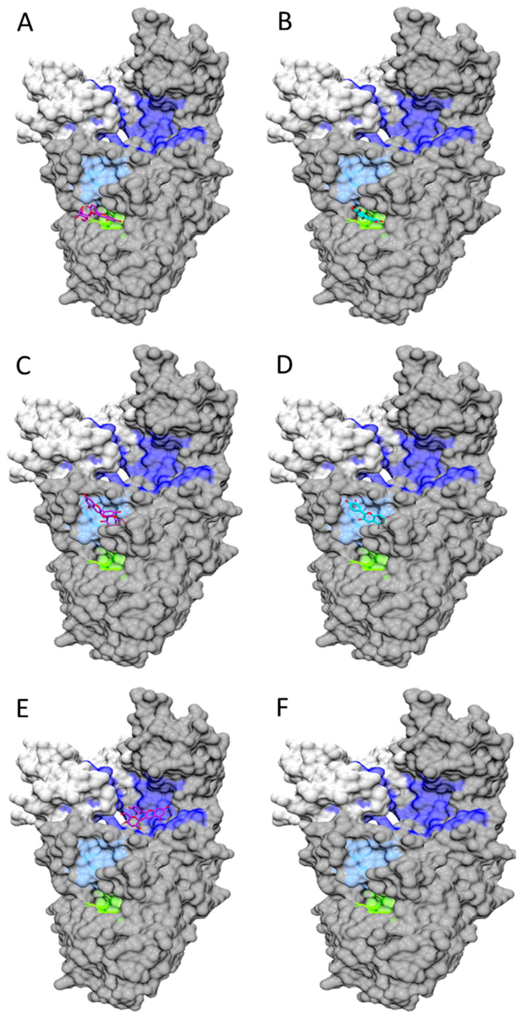 - Pettersen, E.F.; Goddard, T.D.; Huang, C.C.; Couch, G.S.; Greenblatt, D.M.; Meng, E.C.; Ferrin, T.E. UCSF Chimera—A visualization system for exploratory research and analysis. J. Comput. Chem. 2004, 25, 1605–1612. [Google Scholar] [CrossRef] [PubMed]