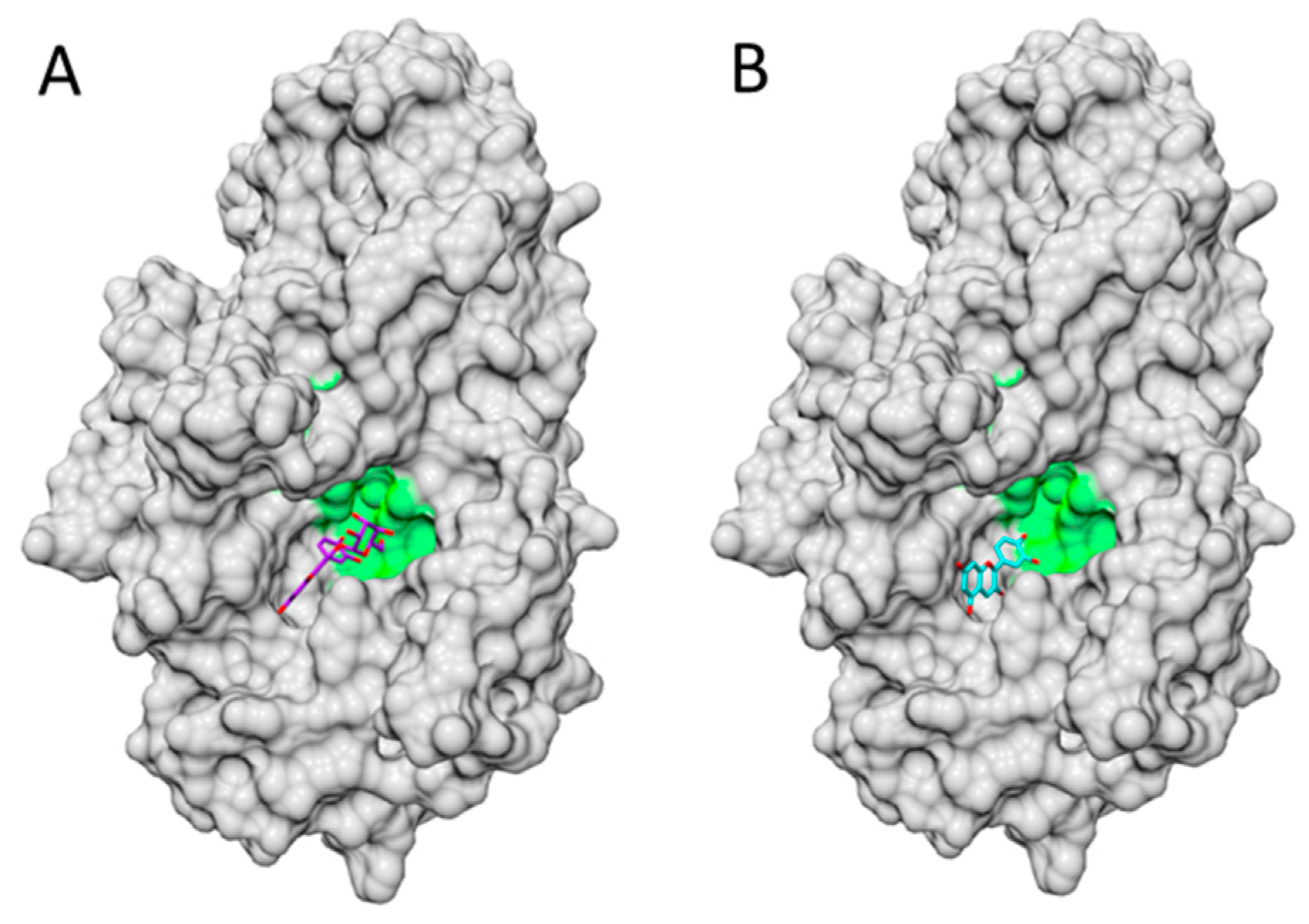 - Trott, O.; Olson, A.J. AutoDock Vina: Improving the speed and accuracy of docking with a new scoring function, efficient optimization, and multithreading. J. Comput. Chem. 2010, 31, 455–461. [Google Scholar] [CrossRef] [PubMed]