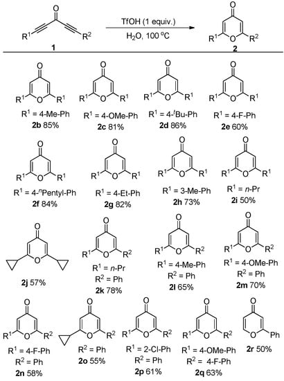 Chicago/Turabian StyleXu, Yan-Li, Qing-Hu Teng, Wei Tong, Heng-Shan Wang, Ying-Ming Pan, and Xian-Li Ma. 2017. "Atom-Economic Synthesis of 4-Pyrones from Diynones and Water" Molecules 22, no. 1: 109. https://doi.org/10.3390/molecules22010109