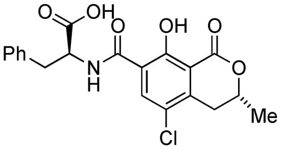 Ochratoxin A (OTA) (Figure 1) is a mycotoxin produced by several species of Aspergillus and Penicillium, and has been detected in wheat and other cereals (the main source of human exposure to OTA), coffee beans, beans, pulses, dried fruit and wine all over the world [1]. This toxin possesses carcinogenic, nephrotoxic, teratogenic, immunotoxic and neurotoxic properties, and is potentially carcinogenic to humans (Group 2B) [1]. To protect human health, a tolerable weekly intake (TWI) of 120 ng/kg b.w. of OTA was established by the European Food Safety Authority (EFSA) [1].