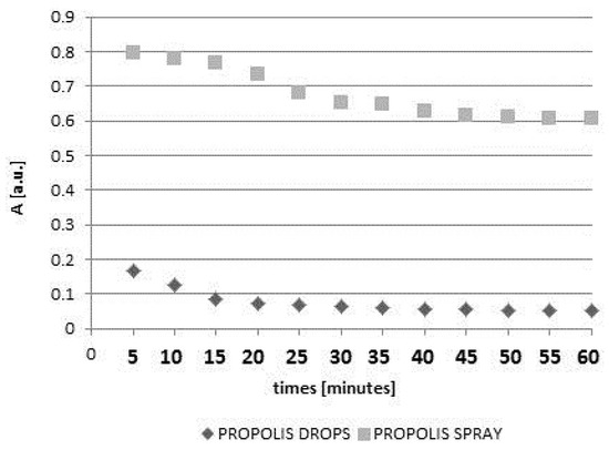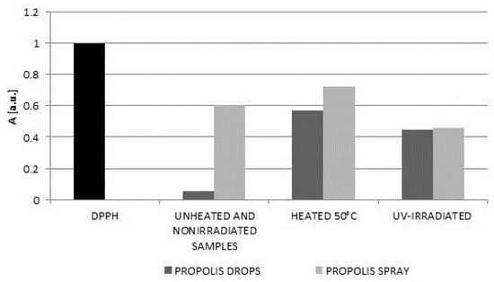Free Radical Scavenging Activity of Drops and Spray Containing Propolis—An EPR Examination