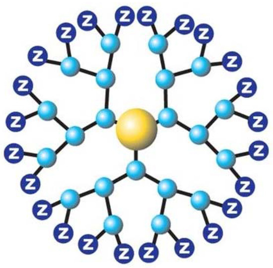 Figure 2). The nanoscale structure of a dendrimer is made up of a main core that is extended out by generation after generation branching process around the central core and ends in polyvalent surface groups [