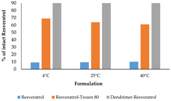 3.7. Stability Study of Resveratrol, Resveratrol + Tween 80 and Resveratrol + Dendrimer in Aqueous Solution