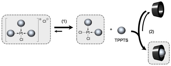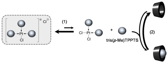 - In preliminary experiments, the formation of cis-PtCl2(tris(p-Me)TPPTS)2 and cis-PtCl2(tris(p-OMe)TPPTS)2 was evidenced by mixing 2 equiv. of the corresponding ligand to a K2PtCl4 aqueous solution (see ESI).