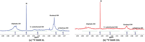 Hydroxyl content quantification by 31P-NMR spectroscopy of KL and CKL.