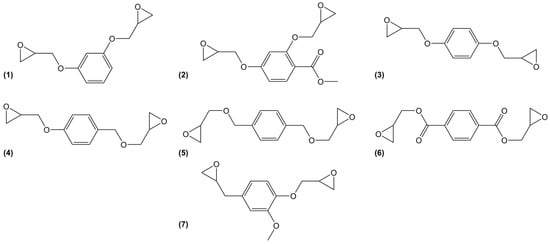 - Tanaka, Y.; Kakiuchi, H. Glycidyl Esters of Aromatic Acids. J. Macromol. Sci. Part A Pure Appl. Chem. 1967, 1, 1469–1485. [Google Scholar] [CrossRef]
