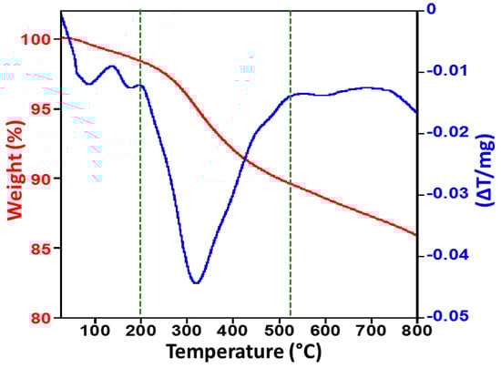 2.5. Thermogravimetric Analysis and Differential Thermal Analysis