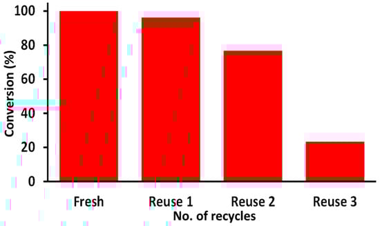 Graphical illustration of conversion product obtained upon catalyst reuse.