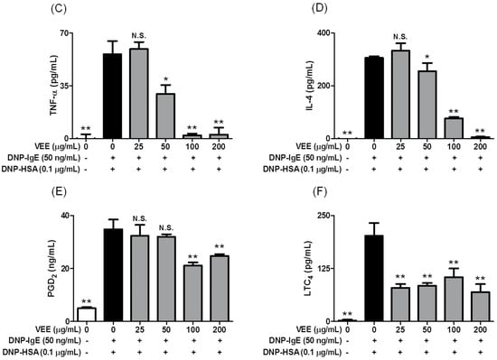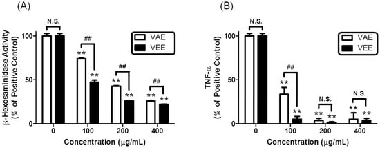 2.1. Inhibitory Effects of VAE or VEE on the IgE/Ag-Mediated Allergic Response in RBL-2H3 Cells