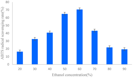 ABTS free radical scavenging rates of different ethanol concentration elution fractions.