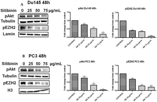 2.3. Silibinin Decreases Phosphorylation of pAkt (ser473) with a Concomitant Suppression of pEZH2 (ser21) Expression Levels