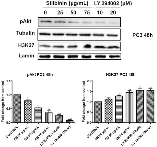 2.4. Increased Trimethylation of Lysine 27 on Histone H3 by Silibinin Is Associated with Decreased pAkt Levels