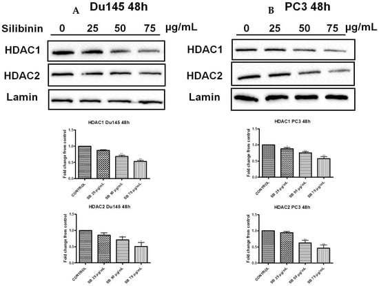 2.6. Silibinin Causes Concentration-Dependent Decrease of HDAC1-2 Expression Levels
