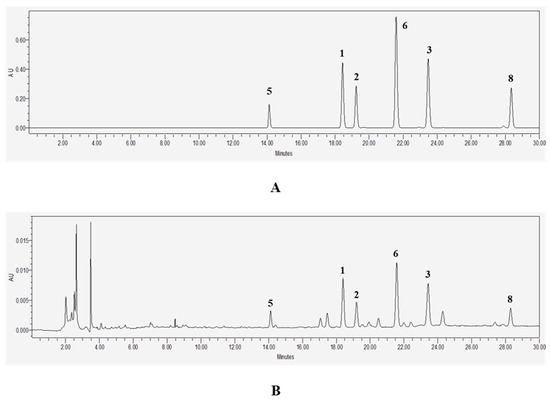 | 10 | β-sitosterol | 13.42 | C29H50O | Positive | 437.3754 | 437.3768 | 0.0014 | 3.2 |