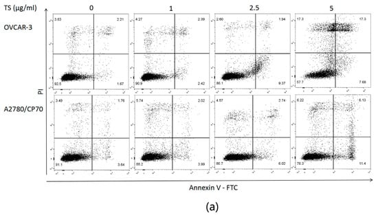 2.2. TS Induces Apoptosis in Both OVCAR-3 and A2780/CP70 Cells