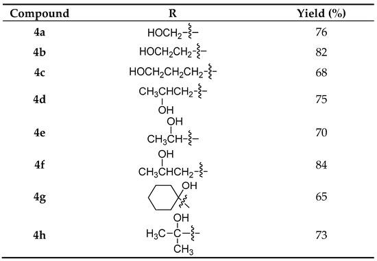 3.5. General Procedure for Copper(I)-Catalyzed Azide-Alkyne Cycloaddition Reactions for the Preparation of Triazoles 4a–4h
