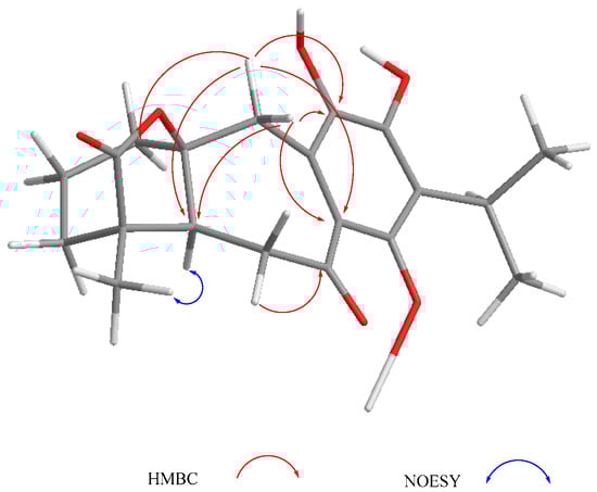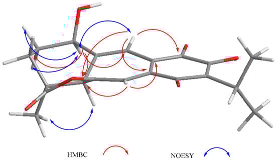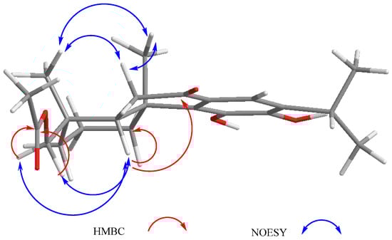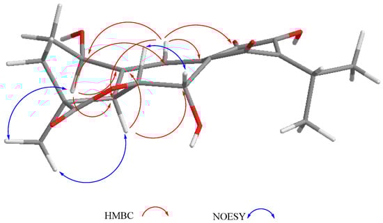The relative configuration of 3 was established with the aid of a NOESY spectrum (Figure 4), while VCD [36,37] allowed the establishment of the absolute configuration.