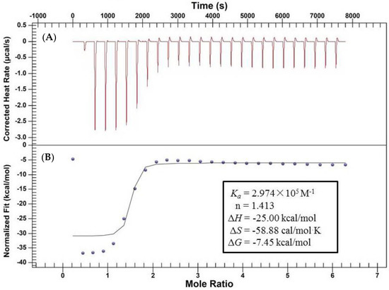 4.4. Isothermal Titration Calorimetry (ITC) Experiment