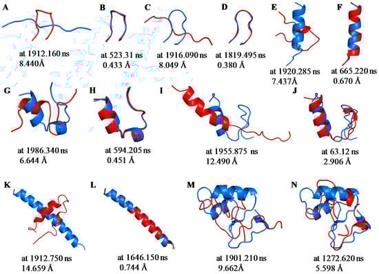 - Seibert, M.M.; Patriksson, A.; Hess, B.; Spoel, D.V.D. Reproducible polypeptide folding and structure prediction using molecular dynamics simulations. J. Mol. Biol. 2005, 354, 173–183. [Google Scholar] [CrossRef] [PubMed]